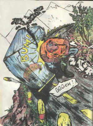 "Priekyje keliukas staigiai išsilenkė it nervinio priepuolio ištiktas".